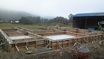 O様邸、土壌蓄熱式床暖房システム 地中へ放熱された熱は地下2mで止まり天然の蓄熱層を形成しその地熱で建物全体を暖めるというシステムです。