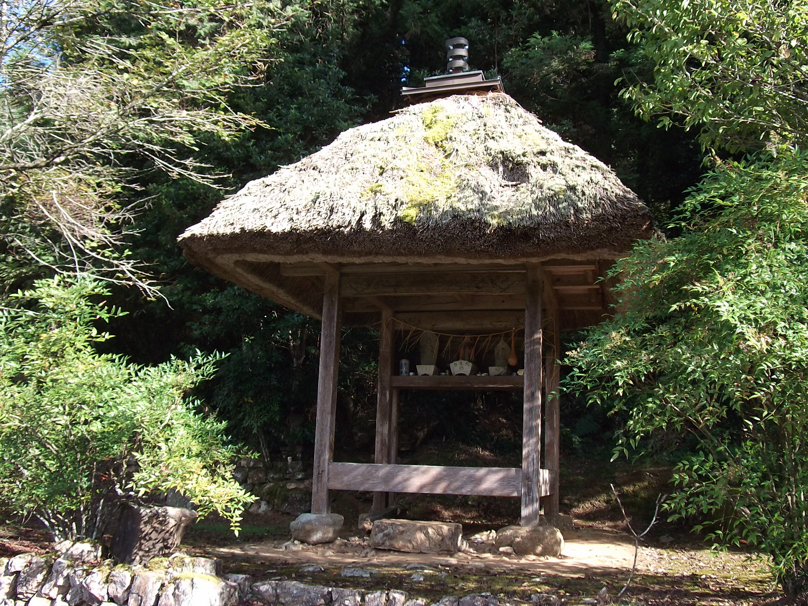 三滝茶堂 三滝渓谷にある茅葺き屋根茶堂屋根茅の葺き替え(H.22)